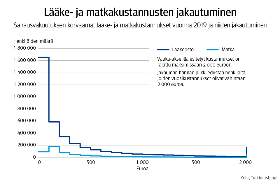 Sairastavuus ja sairauskulut jakaantuvat epätasaisesti. Valtaosalla lääke- ja matkakulut ovat pienet eikä mikään vuosikatto täyty, vain pienellä osalla kulut ovat suuria.